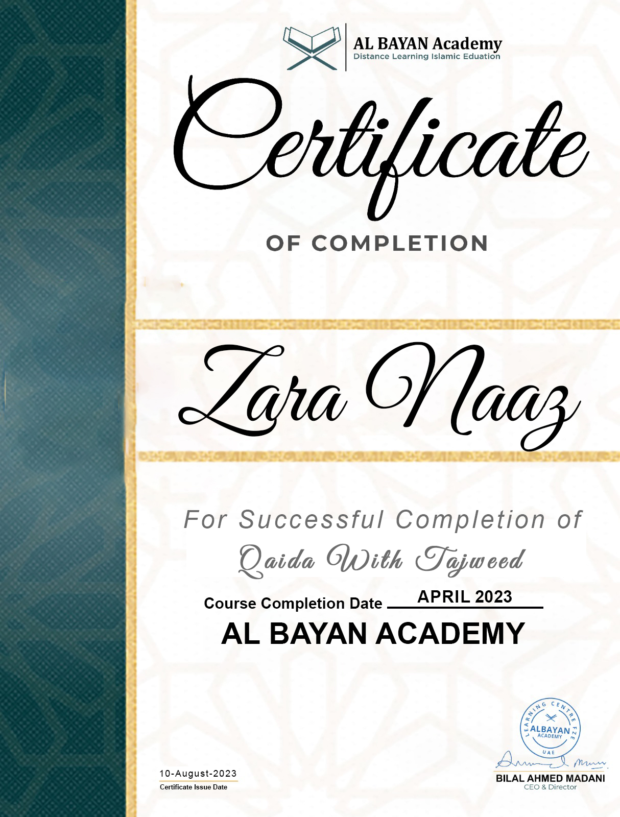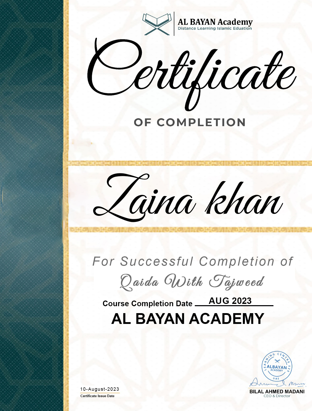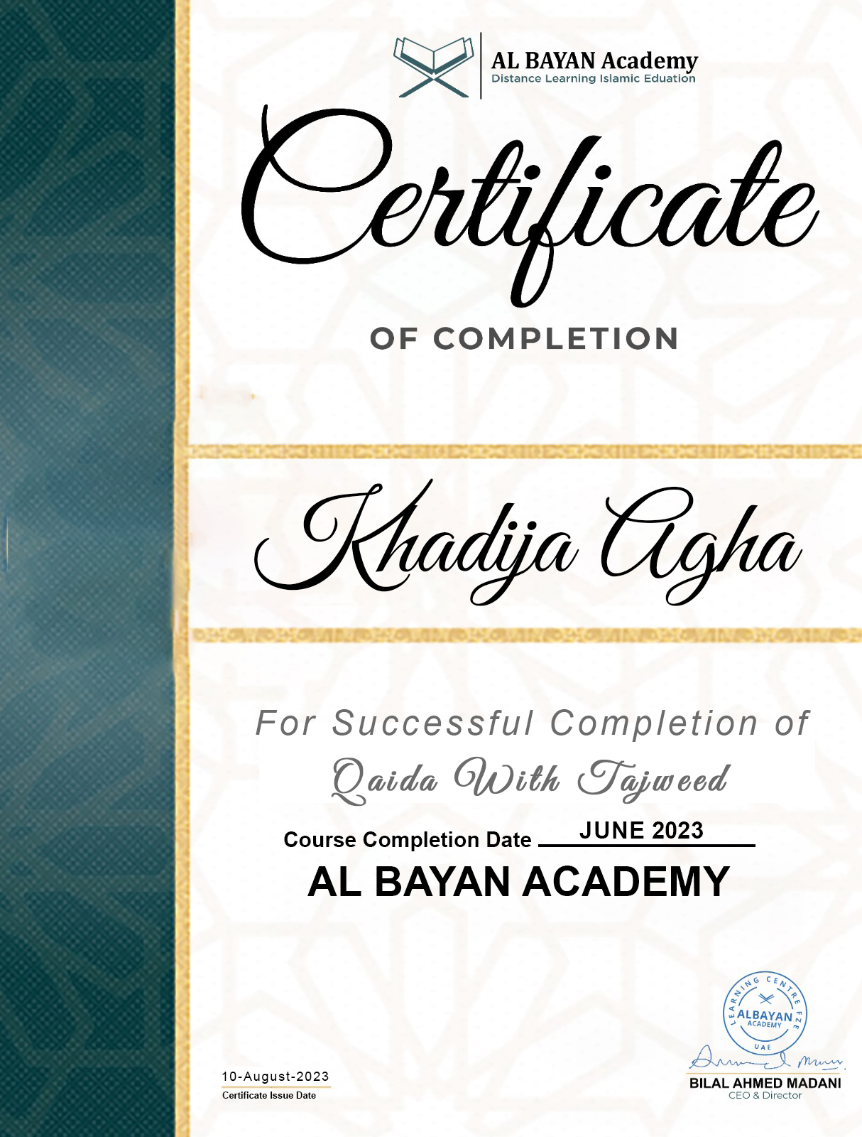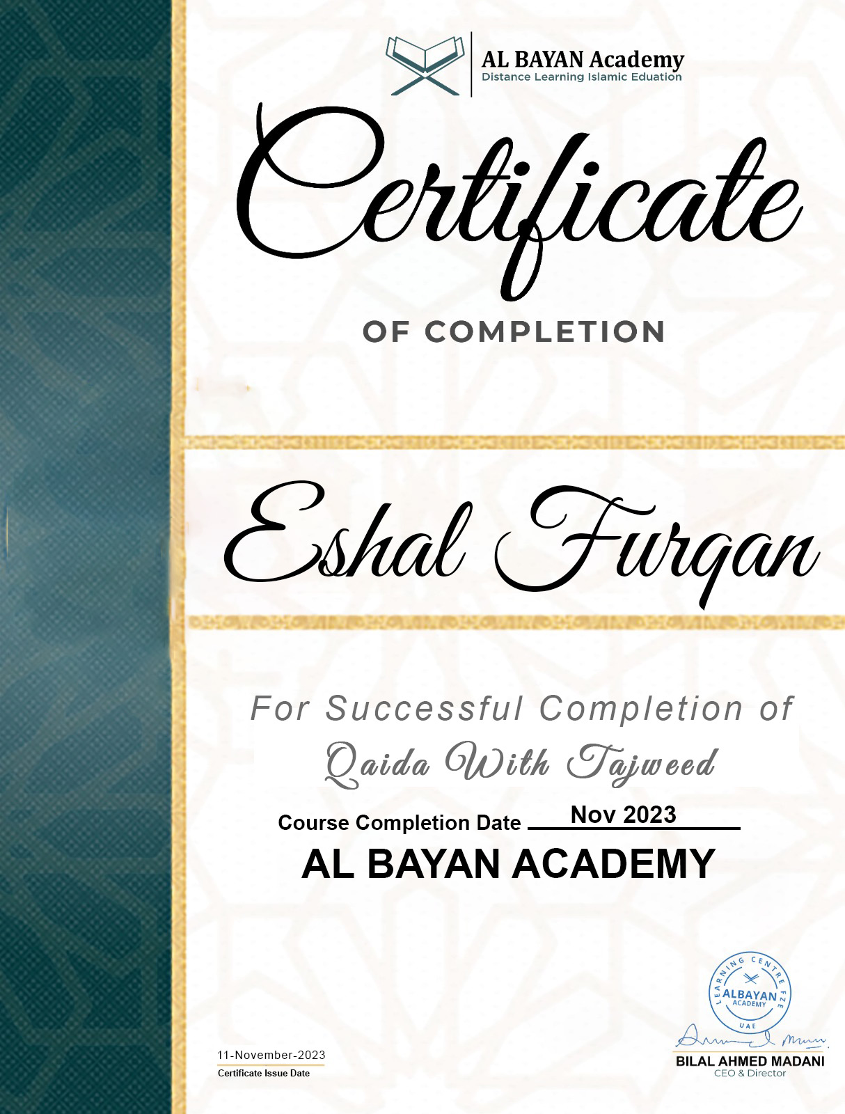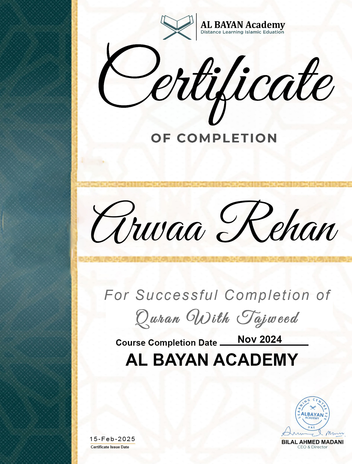 Name: Muhammad Abdul RahmanAge: 13 yearsNationality: Emarati (UAE)